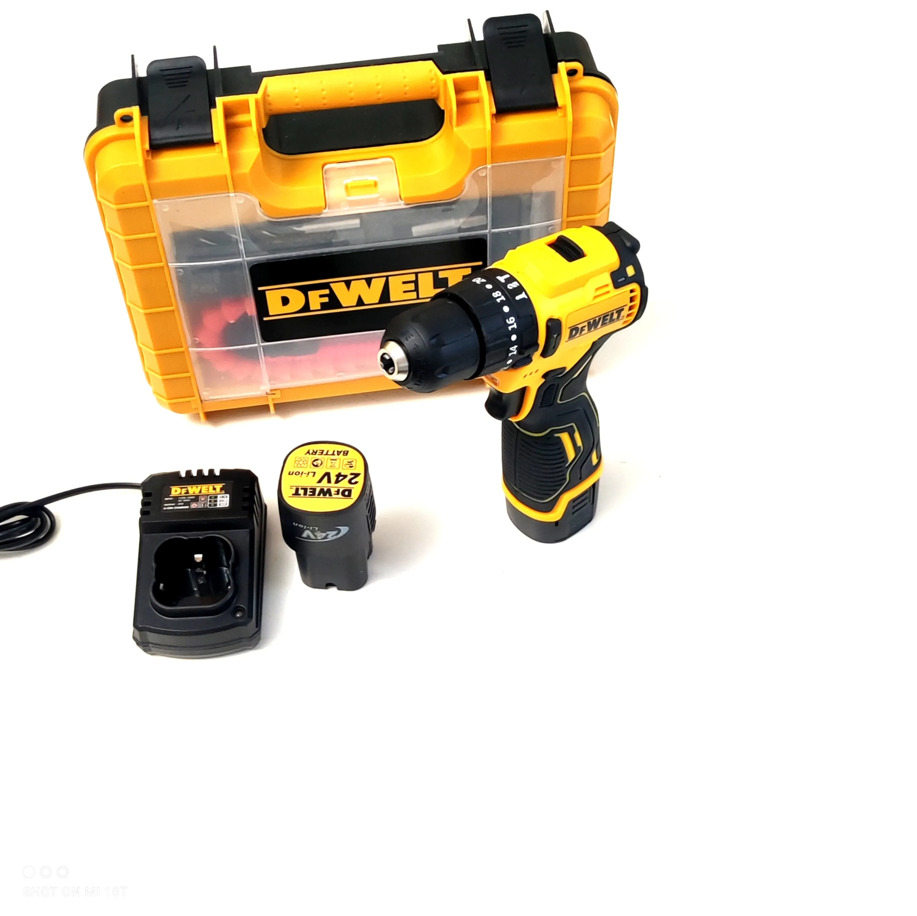 از دیگر قابلیت های دریل شارژی دیمر دار بودن آن است. دیمر این دستگاه از نوع اتوماتیک می باشد، بدین صورت که به هر اندازه ماشه دستگاه را بیشتر فشار دهید سرعت چرخش مته نیز بیشتر خواهد شد. در کنار ماشه این دریل نیز یک چراغ LED قرار دارد که همزمان با فشار دادن ماشه روشن شده و به شما کمک می کند تا در جاهای تاریک دید بهتری داشته باشید. این دریل ابزار دار بوده و همراه آن ابزارهایی شامل ست سری های بکس، پیچ بند و مته در سایزهای مختلف، کاتر، رابط فنری دراز، باتری یدک و شارژر می باشد. همه این وسایل در یک جعبه پلاستیکی محکم قرار داشته و به وسیله این جعبه می توانید دریل و ابزار آن را به راحتی به جاهای مختلف حمل کنید