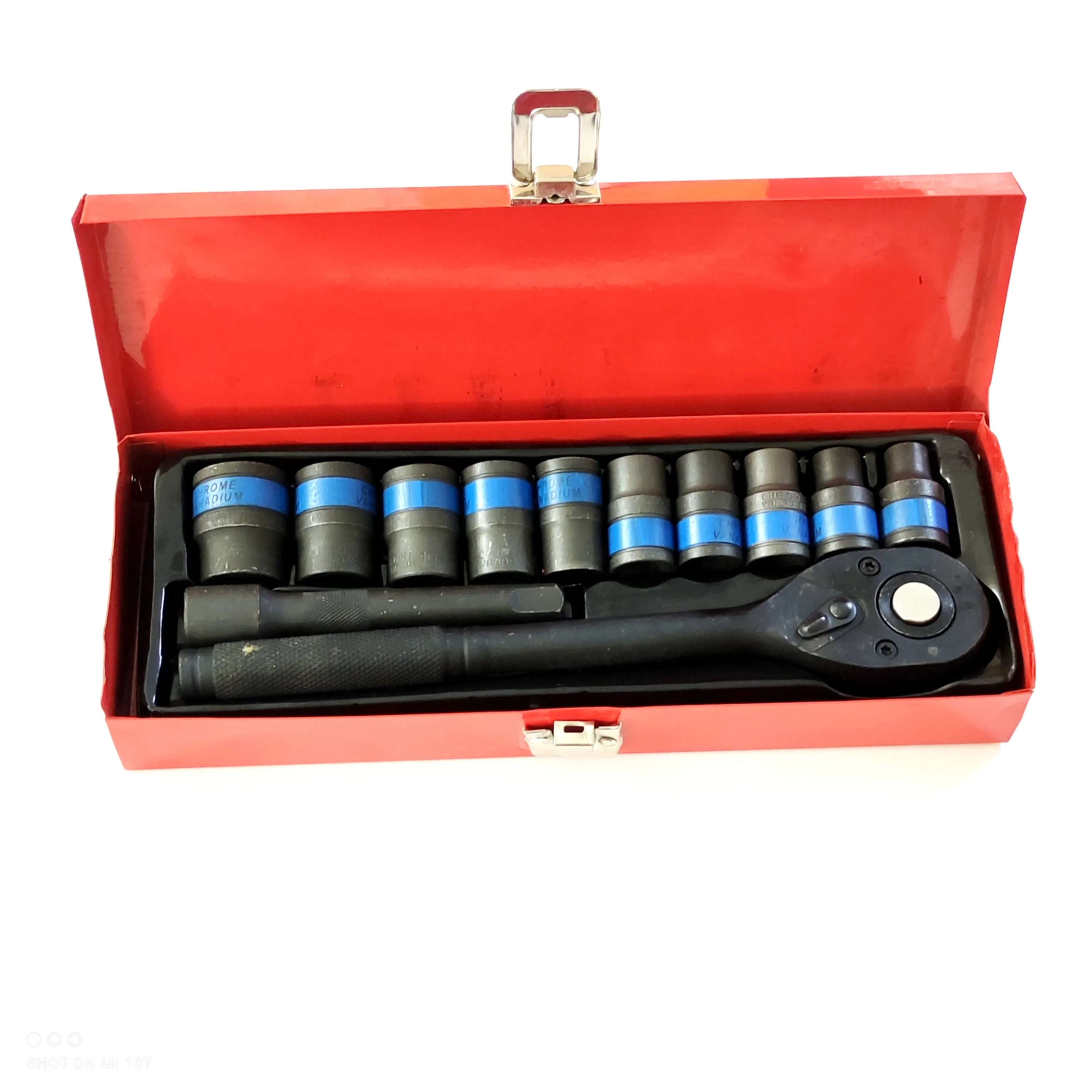 جعبه بکس 12 پارچه تی ای تی شامل 10 عدد بکس به شماره های 8،10،12،13،14،15،17،19،21،24 است و یک رابط به طول 12 سانتی متر و یک دسته جغجغه یک دوم با کیفیت عالی است.