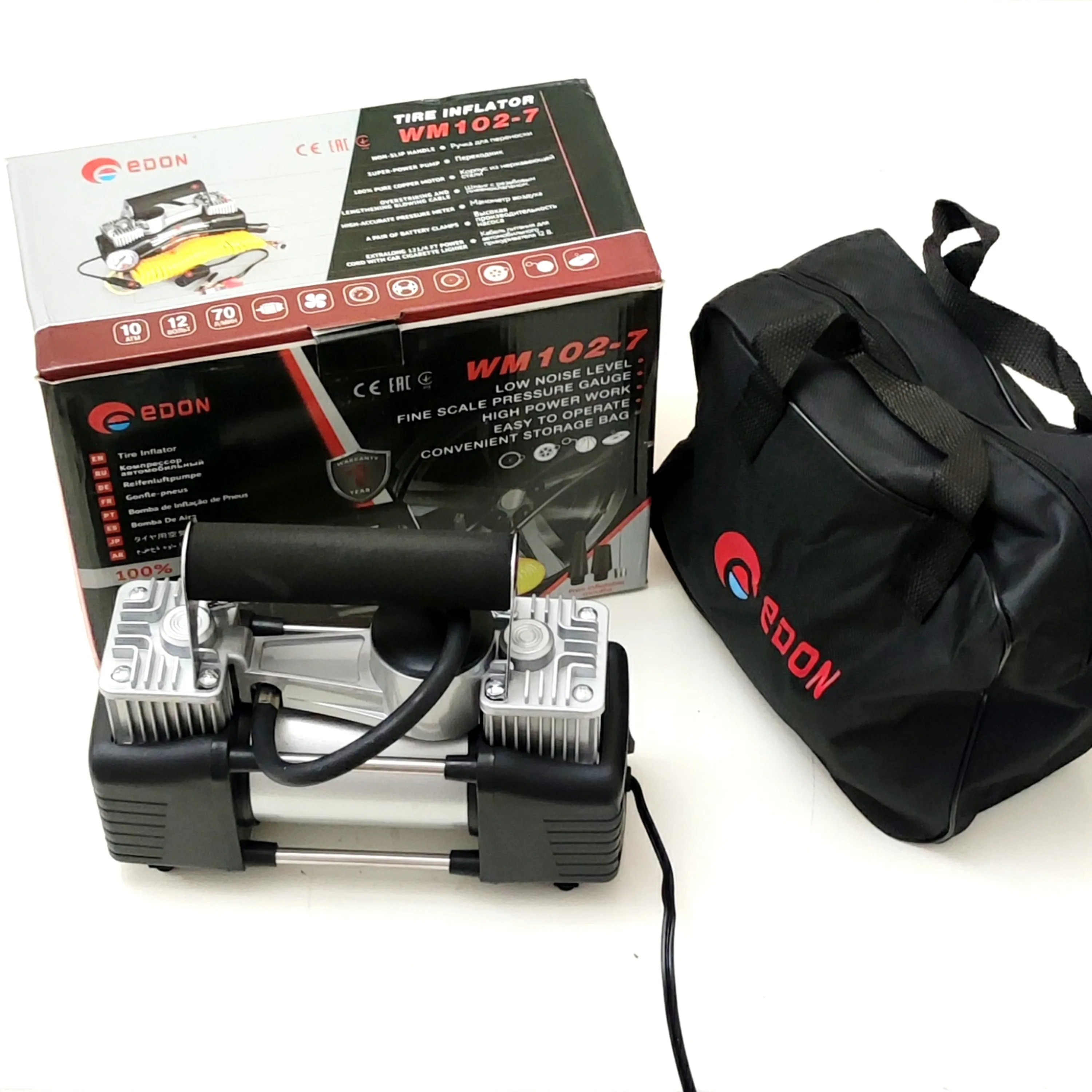 - دارای کیف حمل برزنتی/دارای درجه فشار باد/مناسب برای باد کردن انواع خودرو های سواری و مینی بوس و استفاده های خانگی