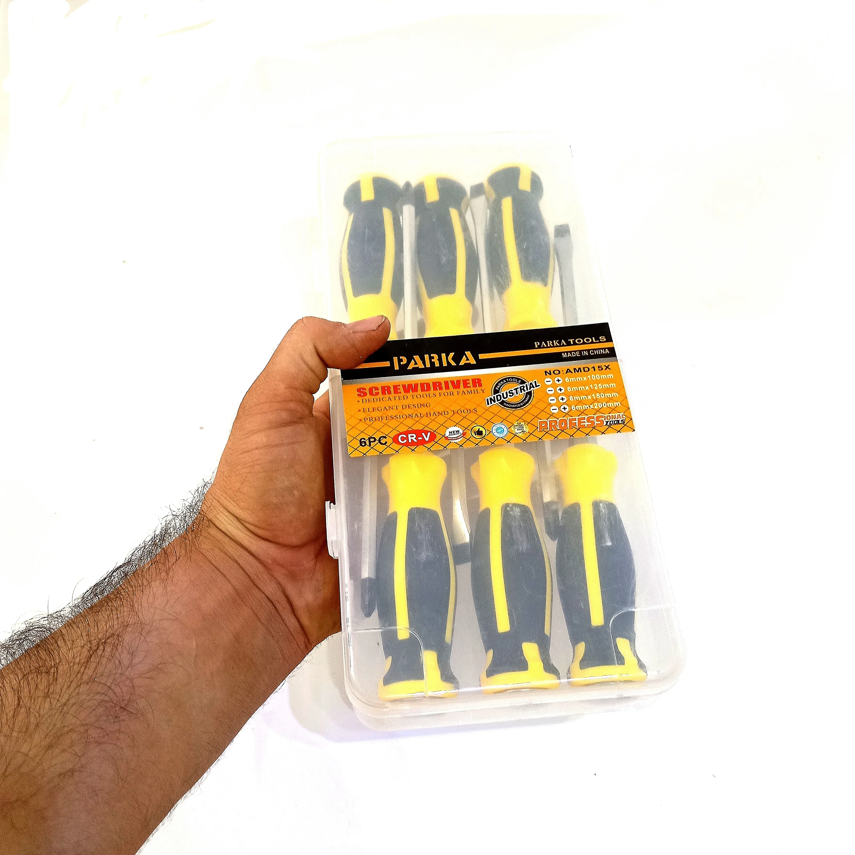 داری جعبه پلاستیکی، با کیفیت، سخت کاری شده، ضربه خور، دارای سه عدد چهارسو و سه عدد تخت، دسته ضد تعریق