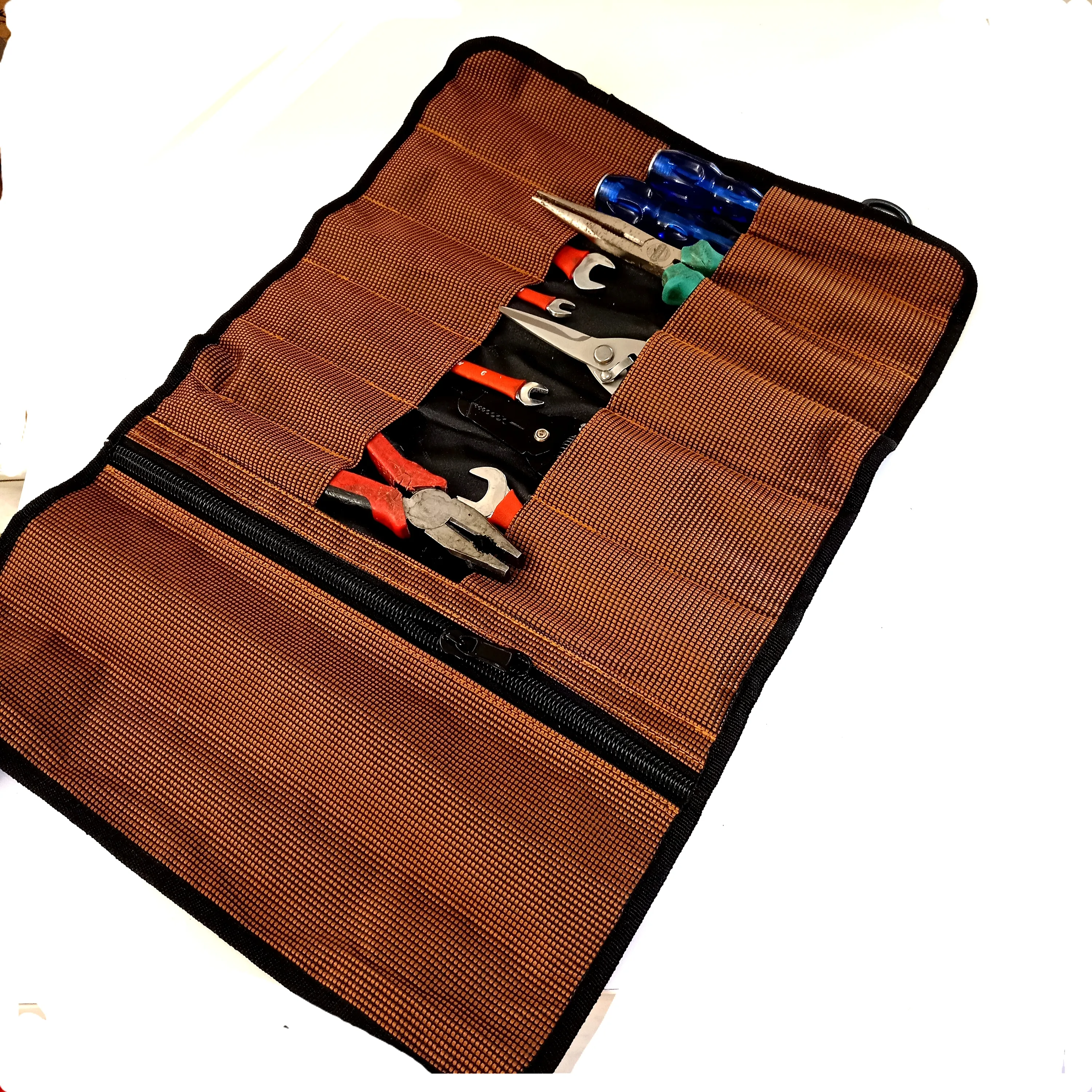 جادار و جمع و جور جهت استفاده و نگهداری ابزار در خودرو و منزل، ساخته شده از برزنت درجه یک، دارای زیپ داخل، ساخت ایران، قیمت مناسب(قیمت فقط مربوط به کیف می باشد و ابزار نمایش داده شده صرفا جهت کاربرد و نحوه استفاده از کیف می باشد)