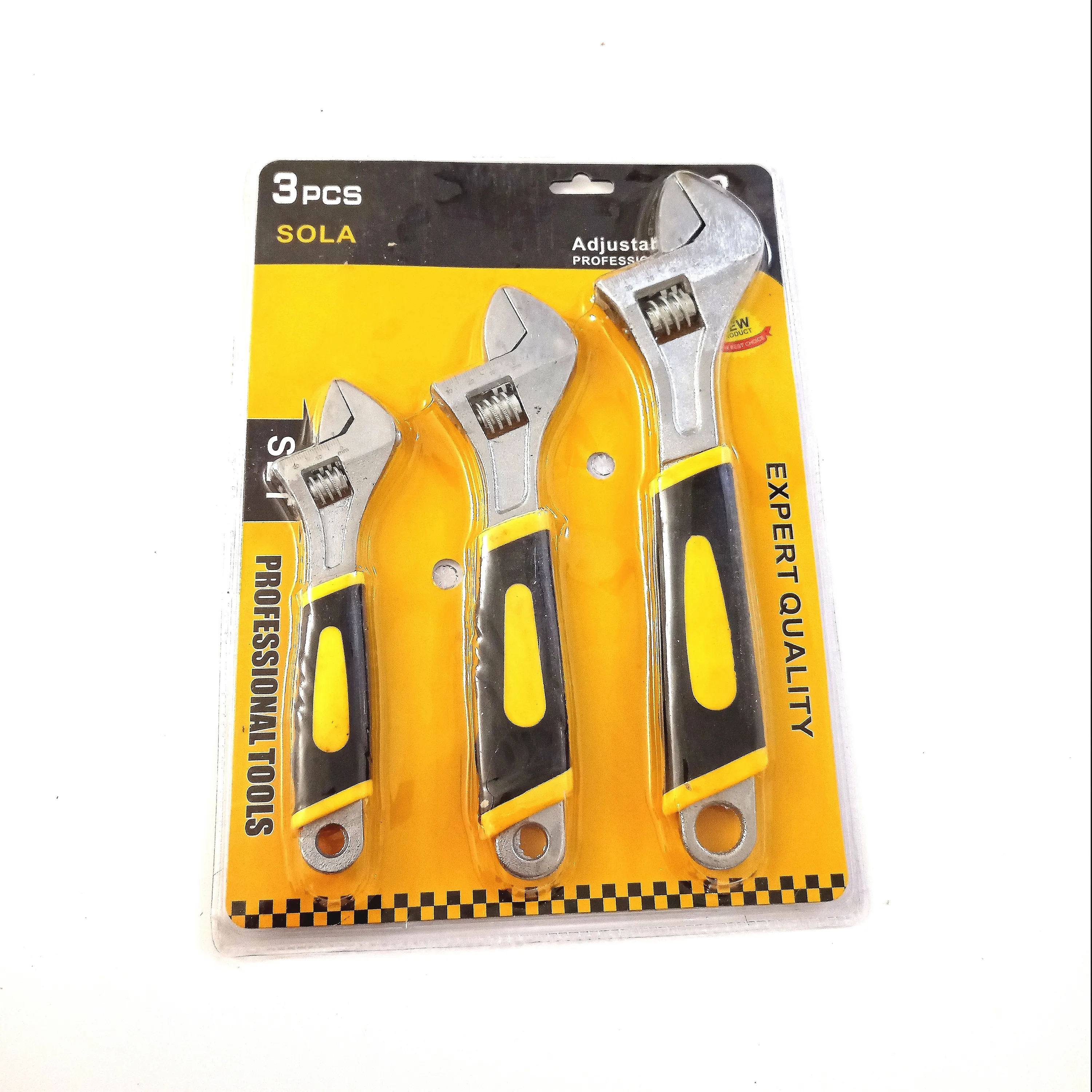 مجموعه دارای سه عدد آچار فرانسه روکش دار به شماره های 8و10و12با کیفیت - قیمت عالی - دارای دسته ضد تعریق - فک روان سخت کاری شده