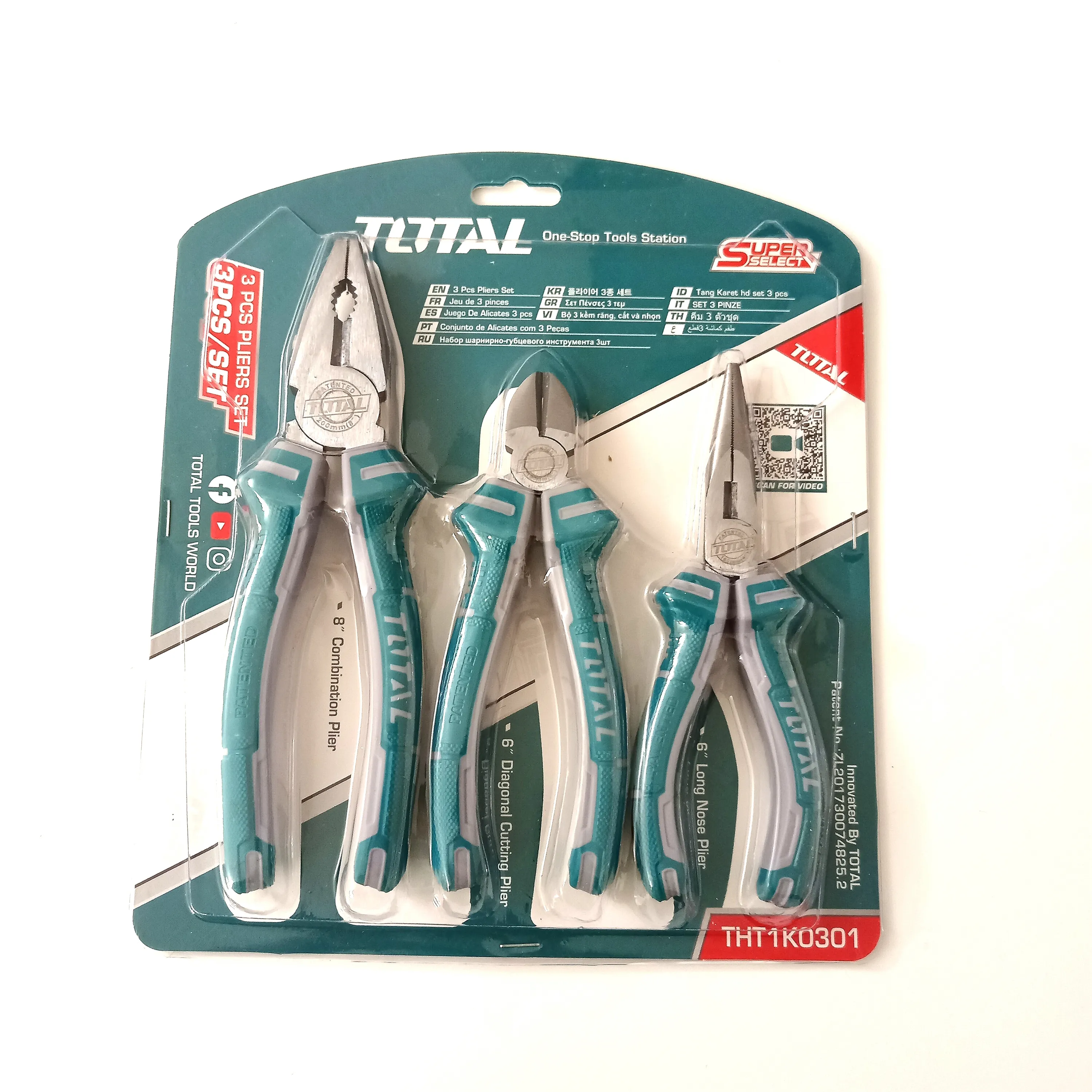 کاملا صنعتی و حرفه ای - محصولی از برند محبوب و با کیفیت توتال - سخت کاری شده - دسته ضد تعریق - دارای سه عدد ابزار شامل یک عدد انبر دست سایز هشت - یک عدد سیم چین سایز6 و یک عدد دم باریک سایز 6