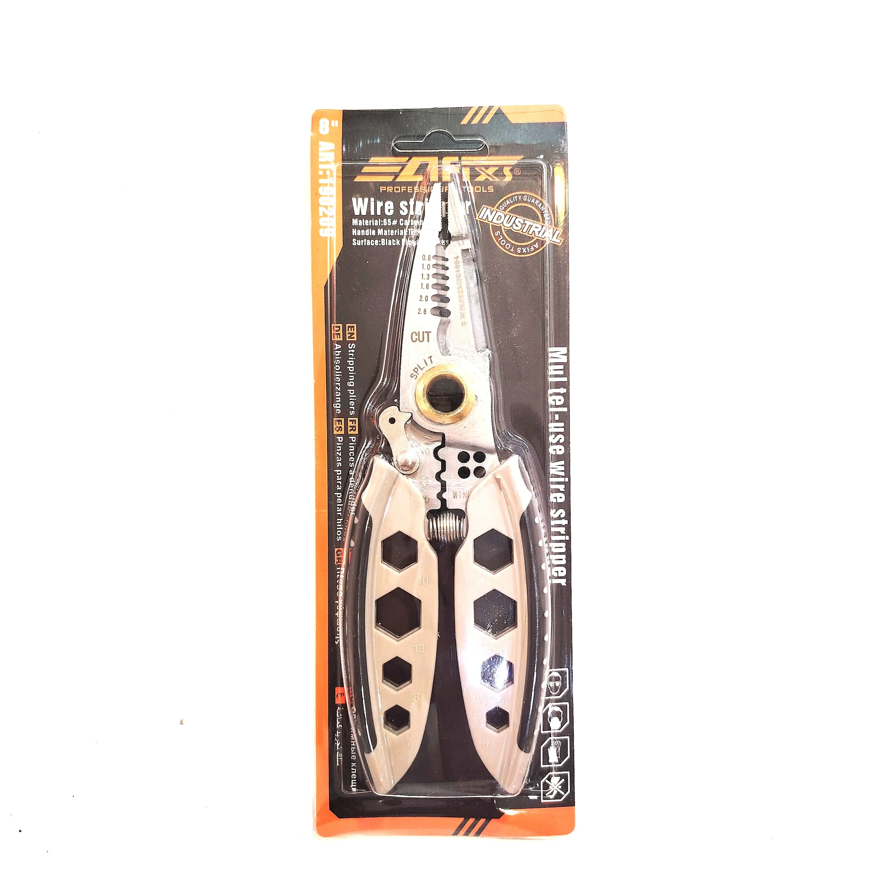 ابزاری چند کاره شامل، سیم لخت کن، سیم چین، پرس کن سوکت فلزی، چاک زن سیم، نوک انبری، دارای هشت عدد جای آچاری تعبیه شده بروی دسته جهت باز و بست پیچ،کاملا حرفه ای مناسب برای سیم های 0.8/1.0/1.3/1.6/2.0/2.6.فورج شده با فولاد کروم وانادیوم، دارای سختی بالا، جلوگیری از زنگ زدگی، مقاومت در برابر سایش و دوام است. موقعیت سوراخ پیچ روی دسته به شما این امکان را می دهد که پیچ ها و مهره های 6 تا 13 میلی متری را به راحتی استفاده نمایید